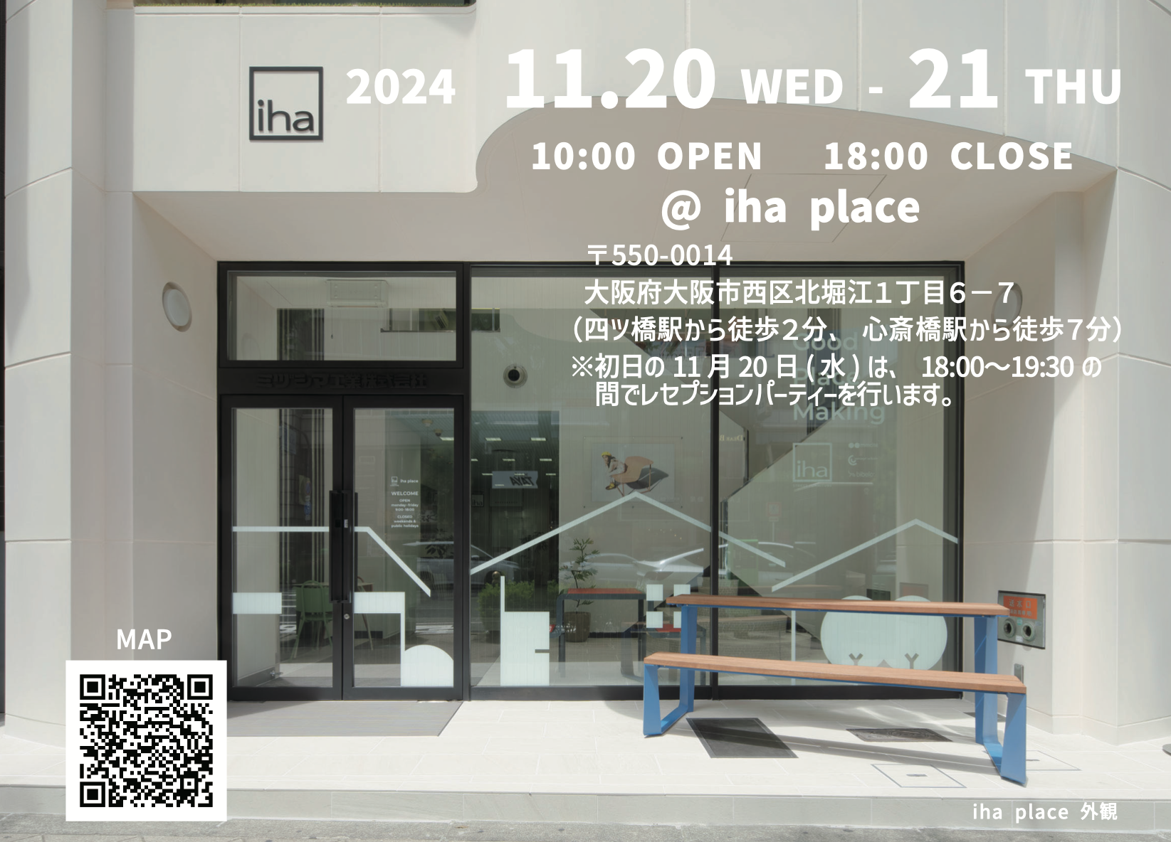 11/20-21に、ショールーム iha place(大阪)にて、(株)トーシンコーポレーション様のプランターの新商品「ストライプ」シリーズのお披露目展示を行います。20日の夜18:00よりレセプションパーティーも開催予定です。ご興味のある方は、予約フォームで申し込みの上ぜひiha placeまでお越しくださいませ。 (展示概要) ■日時:2024/11/20(水) 10-18時 11/21(木) 10-18時 ※初日の11/20(水)は、18:00-19:30の間でレセプションパーティーを行います。 ■開催地:iha place 大阪府大阪市西区北堀江1丁目6-7 四ツ橋駅から徒歩2分、心斎橋駅から徒歩7分 下記の「ご予約フォーム」のQRコードを読み取っていただき、ご来場いただける日にちを予約していただく形となります。